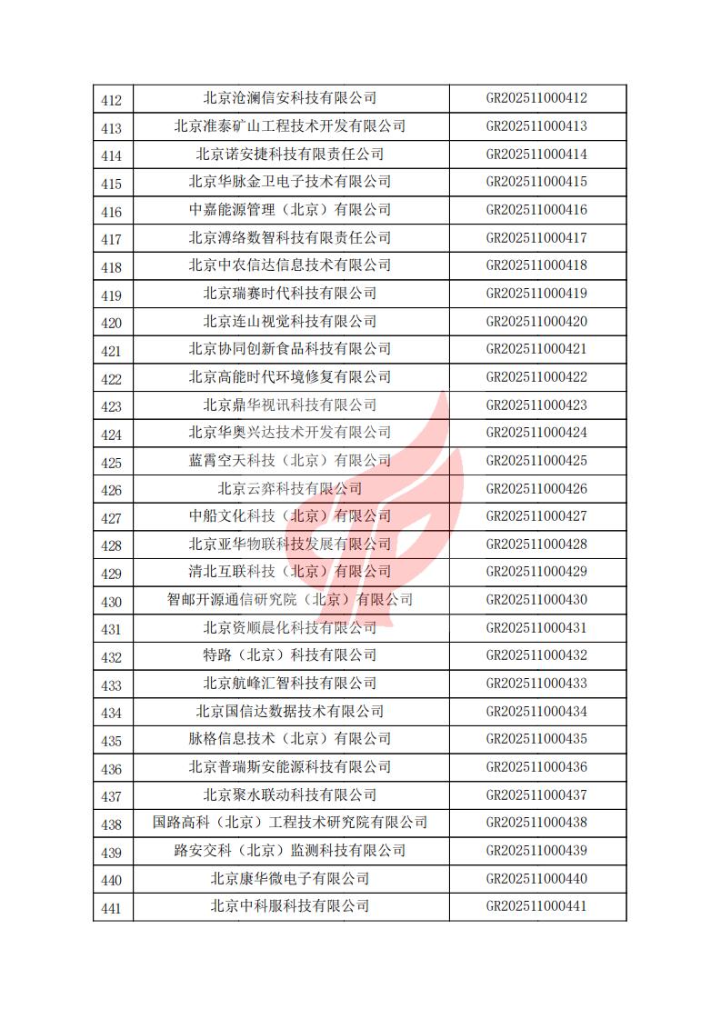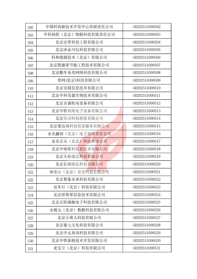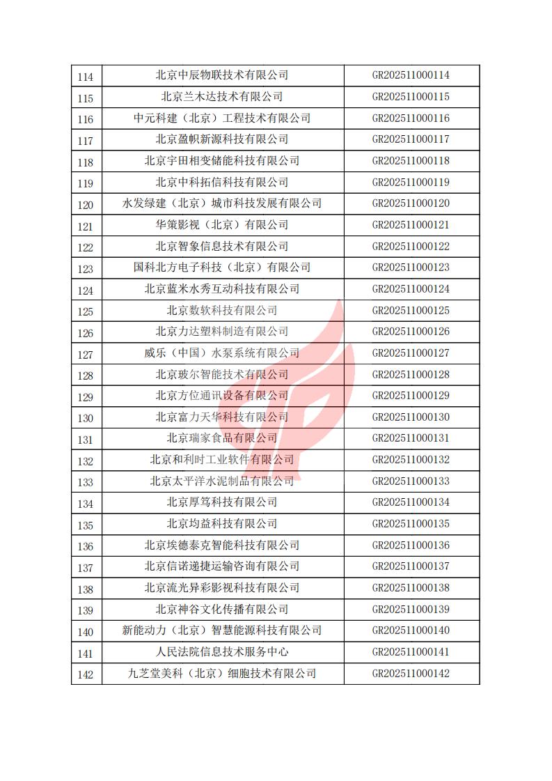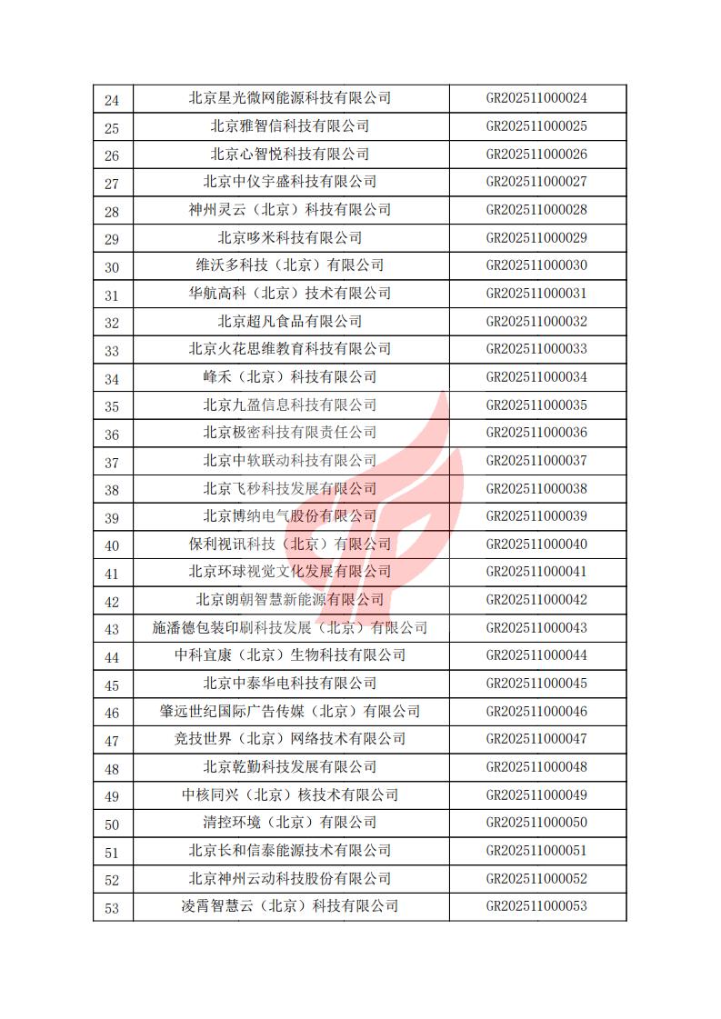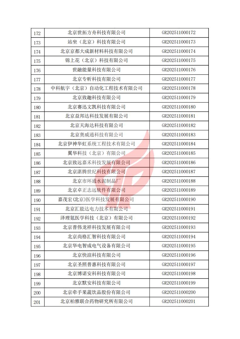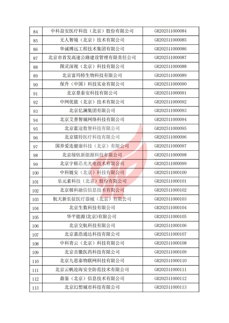 对北京市认定机构2025年认定报备的第一批高新技术企业进行备案的公告