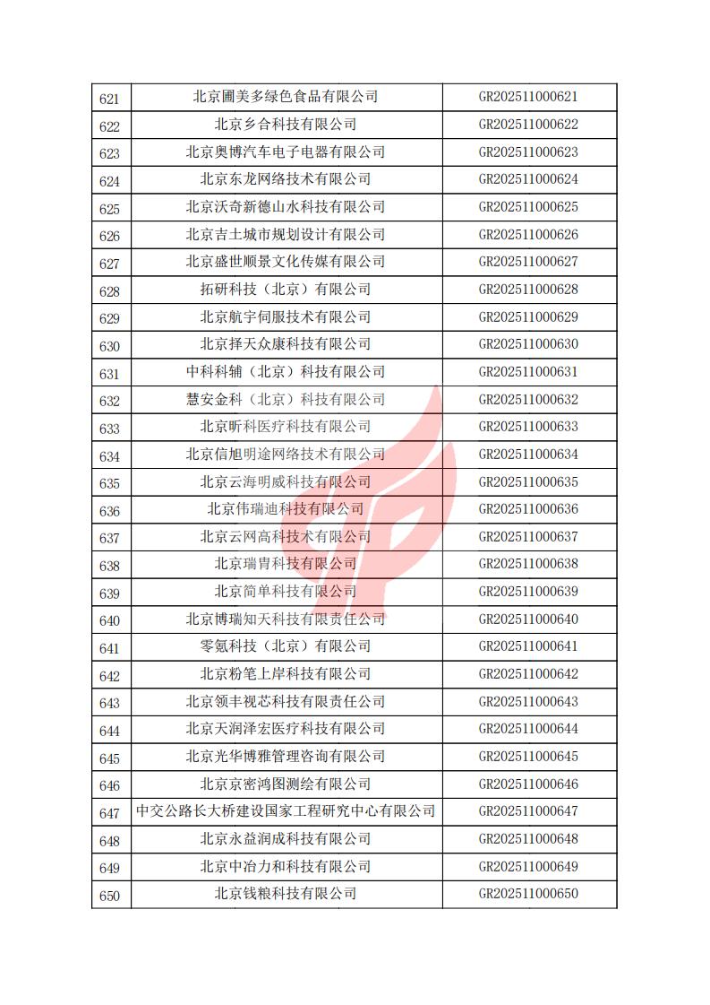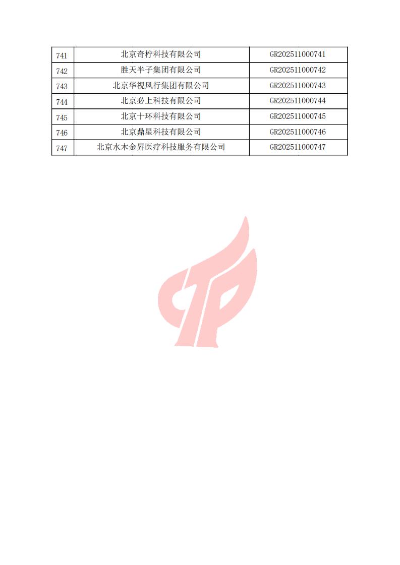 根据《高新技术企业认定管理办法》(国科发火〔2016〕32号)和《高新技术企业认定管理工作指引》(国科发火〔2016〕195号)有关规定,现对北京市认定机构2025年认定报备的第一批747家高新技术企业备案名单(详见附件)予以公告。